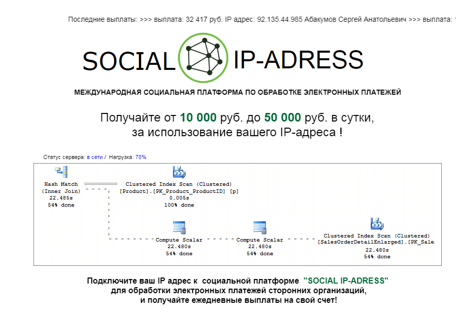Ознакомиться с условиями использования платформы Social IP-Adress и предлагаемой методикой можно по адресу: http://social-ip.ru/index.html. Чрезмерно завышенный размер заработка заставляет задуматься об искренности авторов перед пользователем и состоятельности предлагаемого способа. Практика показывает, что получить доход, превышающий среднестатистическую месячную зарплату в десятки раз, можно только на картинке. Мы беремся за тестирование методики и попробуем выяснить, насколько реально получить указанную сумму.