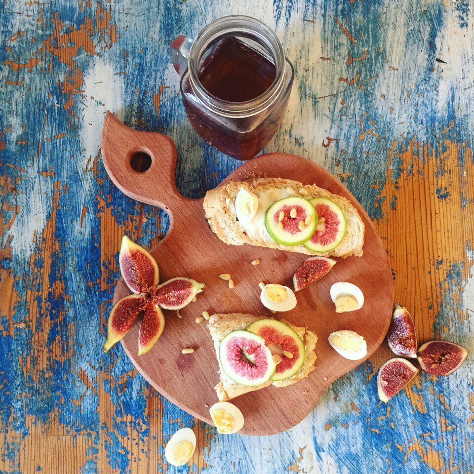Завтракать бутербродами - скучно и не интересно? А если это бутерброд из свежего хлеба с отрубями, который только вчера испекли в булочной недалёко от вашего дома? А вы его утром порезали на красивые ломтики и подсушили на гриле или, например, в тостере. А потом намазали эти ломтики творожным сыром, положили сверху потрясающе красивый и невероятно вкусный инжир, присыпали кедровыми орешками (впрочем можно и без них 😉, а можно и мёдом сбрызнуть или даже бальзамическим уксусом). И да, несколько перепелиных яиц и чашка ароматного чая будут дополнять ваш завтрак? Кто рискнёт сказать слово против таких бутербродов?