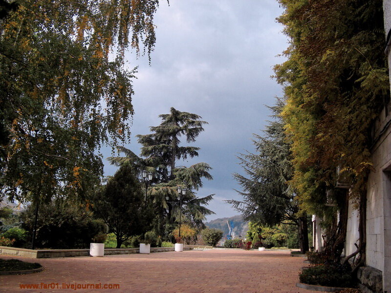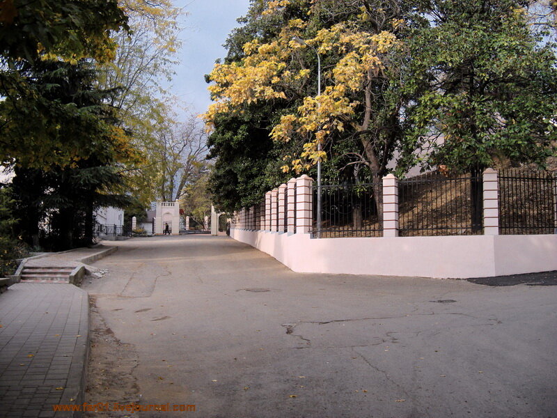 После входа в парк ступеньки. Раньше они вели к аттракционам ("колесо обозрения", "сюрприз", "ветерок").
