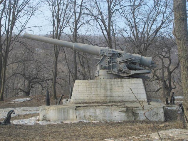 Вот такая 6" пушка Кане стоит на постаменте на острове Русский. Как я понял, это самая комплектная пушка Кане из сохранившихся шестидюймовок. Для тех кто не в курсе, эти орудия стояли на крейсерах "Аврора" и "Варяг", на русских линкорах в качестве противоминной артиллерии, на русских, советских, финских береговых батареях.
