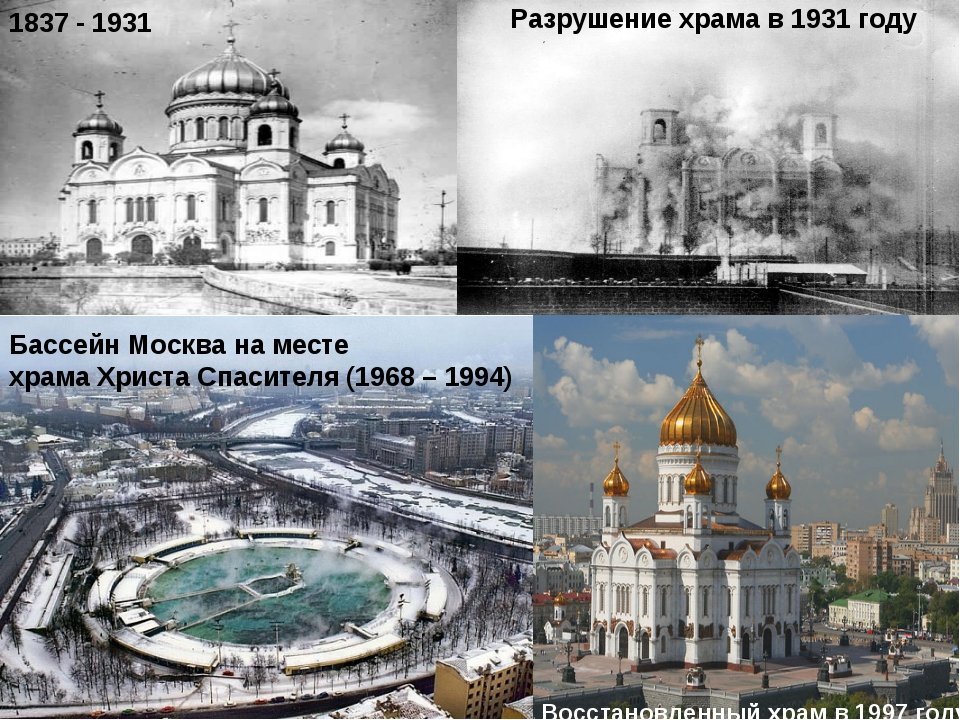 «...сэр Александер всегда говорил, что эта великанья голова уродовала лик Москвы своей несоразмерностью и что единственное благое дело новых русских — взрыв чудовищного творения...» (Борис Акунин, «Алтын-толобас») «Местом для строительства Дворца Советов избрать площадь храма Христа в гор. Москве со сносом самого храма и с необходимым расширением площади» - из решения на заседании Политбюро ВКП(б) 5 июня 1931 года, посвящённом проекту реконструкции Москвы. 5 декабря 1931 года - взорван Храм Христа Спасителя в Москве. Несколько месяцев продолжались спешные работы по разборке здания, однако разобрать его до основания не удалось, и тогда было решено его взорвать. 5 декабря 1931 года было проведено два взрыва — после первого взрыва храм устоял. По воспоминаниям потрясённых свидетелей, мощные взрывы содрогнули не только близстоящие здания, но чувствовались на расстоянии нескольких кварталов. Только для разборки обломков храма, оставшихся после взрыва, понадобилось почти полтора года.