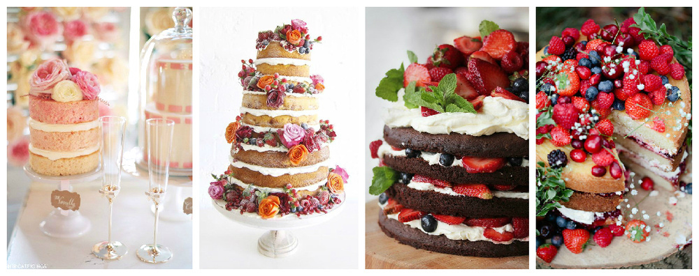 "Naked cake", или, как его называют в России - торт с открытыми коржами - тренд 2015-2017 и наступающего 2018 года. Переводя дословно, "голый торт" действительно совсем голый - коржи и начинка теперь не представляют для гостей какой-либо загадки: всё на виду и, безусловно, вызывает аппетит. Многие ценят открытые коржи именно за то, что они выглядят гораздо более "съедобными", чем традиционные мастичные торты, которые зачастую до того, как их разрежут, похожи на пластиковую бутафорию. Может показаться, что торты с открытыми коржами не дают никакого простора фантазии в оформлении и выглядят однообразно, но это совсем не так - в доказательство тому наша подборка различных вариантов оформления naked cake. ЯГОДНЫЕ Что может быть аппетитнее, изящнее и вкуснее свежих ягод, которые щедро разложены по всему торту? Горы малины, клубники, черники и вишни, украшенные листочками мяты, веточками розмарина и сливками вряд ли удивят ваших гостей, но совершенно точно вызовут их восхищенные взгляды. C Ф