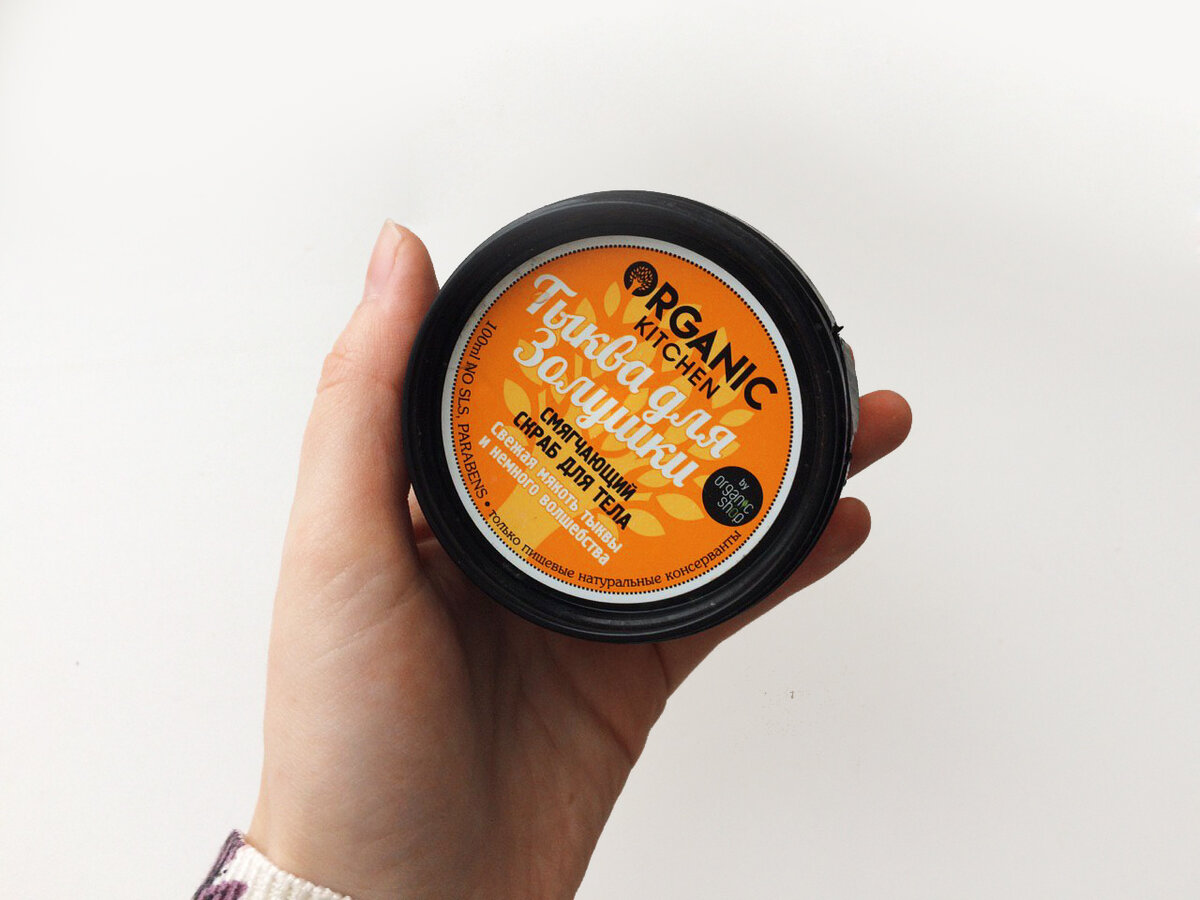 Я не фанат Organic Shop, но если уж подарили, то грех не попробовать. Баночки у них, конечно, симпатичные и стоят недорого - от 69 рублей. Но те, которые я покупала сама, мне не нравились. Подарили мне скраб для тела "Тыква для золушки", название мне понравилось, тем более это было перед Новым Годом Забегу вперед и скажу, что это единственная баночка от Organic Shop, которой я пользуюсь и довольна Хоть этот скраб для тела, но я иногда использую его для носа. Он очень хорошо и мягко отшелушивает. В составе написано, что присутствует мякоть тыквы, но мне скраб больше по запаху напоминает мёд. Внутри баночка выглядит так: Этот скраб мне нравится тем, что у него не такие большие частички, как у большинства скрабов и при этом очень мягкая консистенция. За счет этого скраб не травмирует кожу и даже дополнительно ее смягчает. Мою кожу он не сушит и не раздражает, в отличие от многих аналогов. Я считаю, что по такой цене это хороший продукт. Советую!