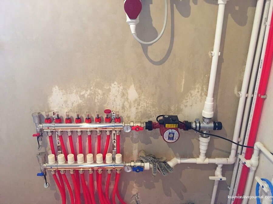 Монтаж теплых полов был завершен, в систему залита вода с рабочим давлением и включены теплые полы для проверки до стяжки, что все ок: зы. дополнение, если кто пропустил прошлые серии или на фото не может разглядеть ;)