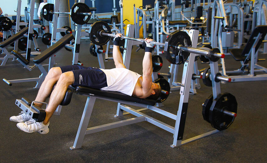 Для выполнения такого жима штанги лежа понадобится специальная скамья, найти ее можно практически в любом тренажерном зале. Серьезным недостатком упражнение является то, что ноги приходится отрывать от пола, получается довольно неустойчивое упражнение. Если вы делаете упражнение с небольшим весом, то это может показаться пустяком, но небрежно относиться к этому не стоит: упавшая на грудь штанга может нанести много вреда. Так что отнеситесь к выполнению этого упражнения серьезно и постарайтесь занять максимально фиксированную позицию. Желательно, чтобы вас страховал напарник. Серьезных