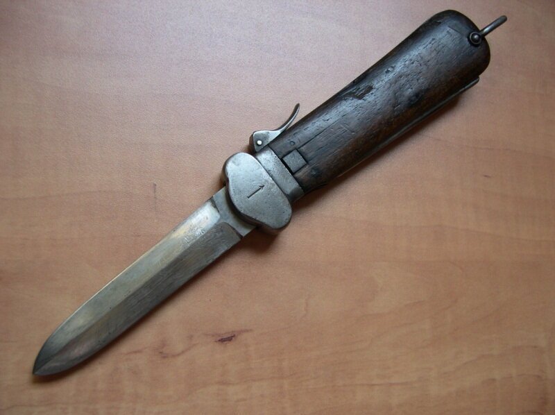Эти ножи стали почти точными копиями немецких ножей-стропорезов. В итоге общая численность произведенных за военные годы английских гравитационных составляла приблизительно три тысячи двести единиц. Некоторые военные эксперты утверждали, что со всеми оставшимися после войны ножами поступили непредсказуемо. Их всех собрали в одном месте и затопили где-то в пучине Северного моря.