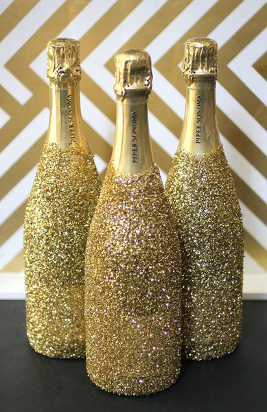В Новогоднюю ночь мы все загадываем желание, бросая бумажку с ним в искрящиеся пузырьки. Яркие, сияющие золотом, бутылки самого волшебного напитка этого года придутся как нельзя кстати для этого обряда! Для декорирования нам понадобится: