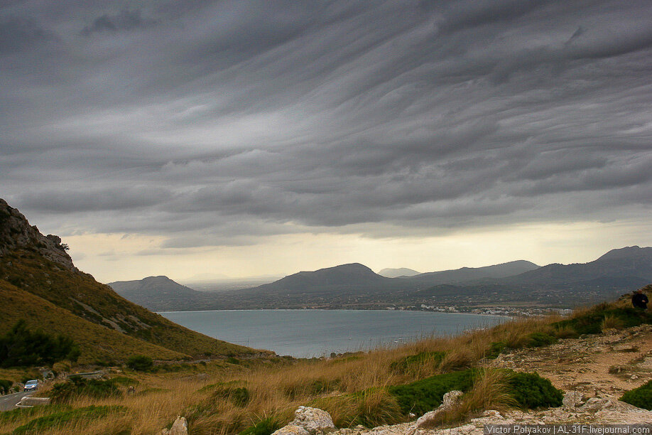 Меня упрекнули в чрезмерной романтизации тех мест, которые я тут показываю. Поэтому, сразу скажу, мыс Форментор, на который мы сегодня отправимся, куда романтичнее, действительно, выглядит с самолета. А по земле туда ехать нужно если только для галочки, что там был. С погодой нам опять повезло. С моря несло серые тучи, дул сильный ветер и периодически лил дождь :) Единственное, что меня очень порадовало, так это по-настоящему синее море. Ну и небольшой привет из Симеиза :) А это, наверное, я. Это была смотровая площадка в самом начале пути. Дальше нас ждала узкая извилистая горная дорога... И тоннель в конце света. Дорога прорубленная в склоне. Совсем на краю земли дорога превращается в однополосную, полностью заставленную машинами, а вдоль обрыва ходит козел. Вот и вся романтика. А нам нужно как-то развернуть машину и ехать обратно. Хотя, нет, тут же еще полно романтики. Например, можно посмотреть в бескрайнее синее море. Но не долго. Сильный ветер сушит глаза. Ну, или полюбоваться м