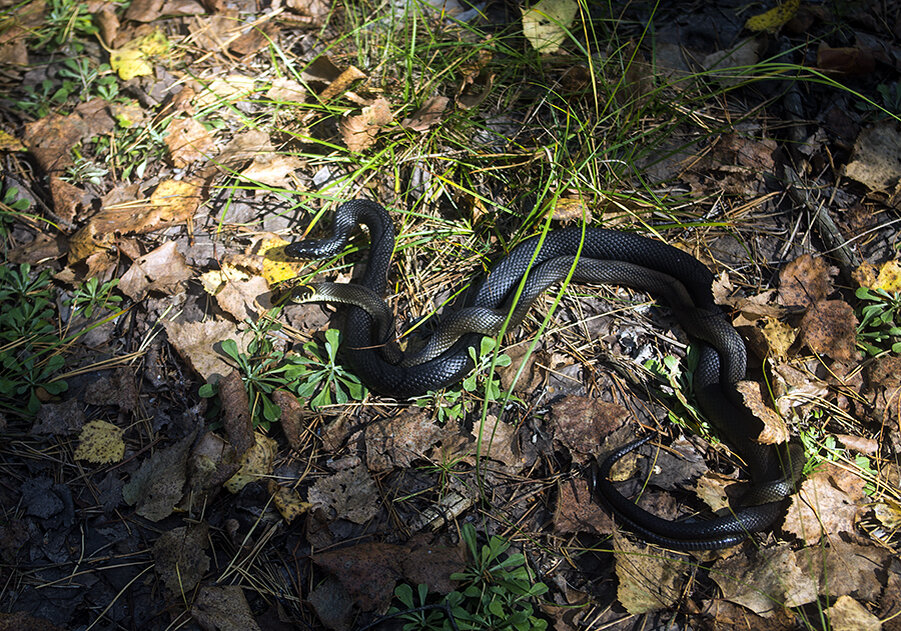 Прогуливаясь по лесу случайно наткнулся на такую вот необычную пару. Черная гадюка и уж. Не хотелось тревожить интимный момент, но как такое не сфотографировать !?