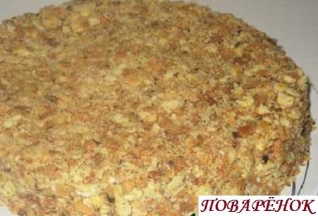 Вам понадобится: Для теста: Для крема: Время приготовления: 2 часа (приготовление) + 6 часов (пропитка) Приготовление: 1. Муку для теста просеять, добавить щепотку соли. Натереть маргарин на терке. 2. Руками растереть смесь муки с маргарином в крошку. 3. Постепенно добавляя молоко, заместить крутое тесто. Разделить тесто на 12 шариков. 4. Тонко раскатать шарик в пласт, вырезать круг (можно взять тарелку). 5. Переложить кружок теста на противень, присыпанный мукой (обрезки понадобятся позже), наколоть вилкой в нескольких местах. 6. Выпекать корж 5-7 минут при 180°С, аккуратно снять корж с противня. Аналогично испечь остальные шарики, складывая коржи в стопочку.