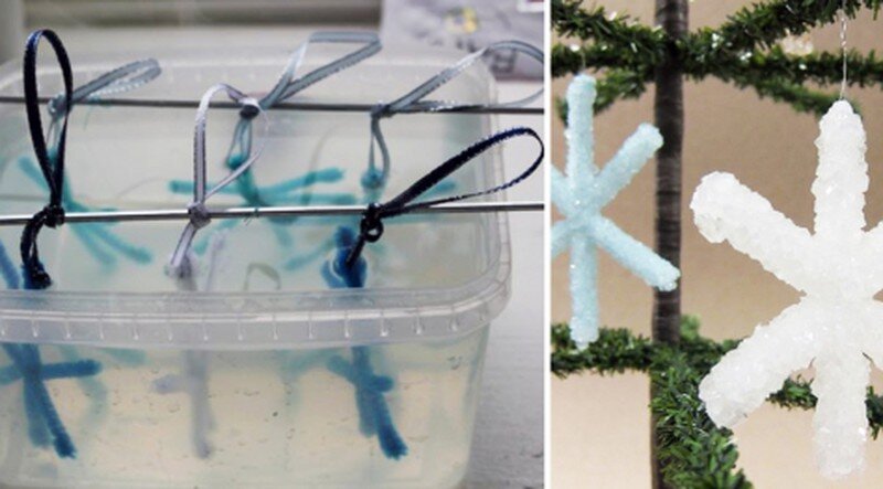 Экспериментировать только вместе с родителями! Смеси: Лабораторное оборудование: Расходные материалы: Этапы. !Этот этап очень важен, т.к. именно держа за нитку, нужно погружать заготовку снежинки в солевой раствор. Чем горячее вода, тем быстрее процесс кристаллизации. Процесс кристаллизации станет заметен уже через 2 часа, а через сутки полностью завершится. Аналогичный опыт можно проделать используя зубочистки, обмотанные шерстяными нитками. Подписывайтесь на наш канал, чтобы получать больше информации. Ставьте лайки!!! Ещё больше интересных статей на сайте Очумелые ручки