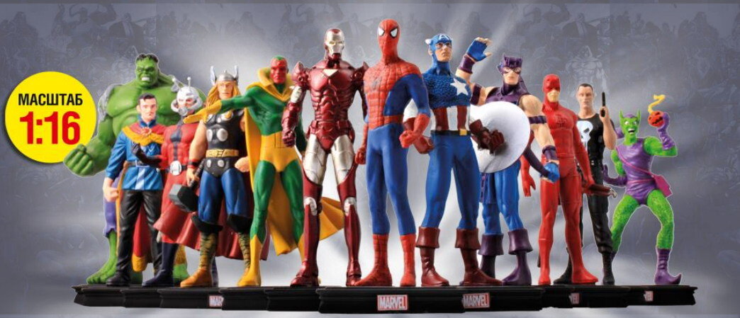 c выпуска № 3 – 699 руб. Выходит раз в 2 недели. В продаже с 16 января 2018 года. Планируется 100 выпусков. Эксклюзивные фигурки MARVEL Уникальная подборка самых популярных героев и злодеев Вселенной MARVEL! Исключительный журнал В журнале: захватывающее досье персонажа, основные сюжетные линии, события за кулисами! ПЛЮС оригинальный