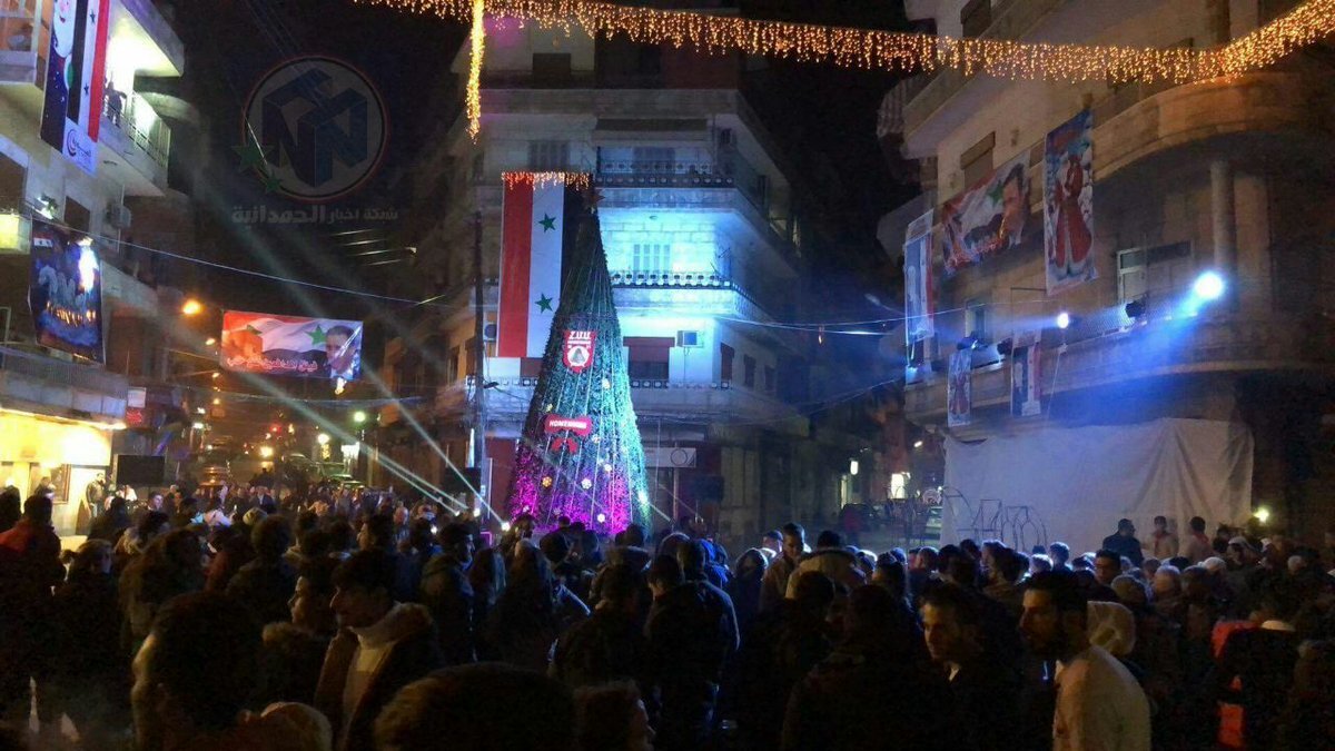 В районе аль-Азизия города Алеппо установили рождественскую ёлку. Это первое рождество, которое отпразднуют жители после освобождения города от боевиков силами сирийского правительства и России в декабре прошлого года.