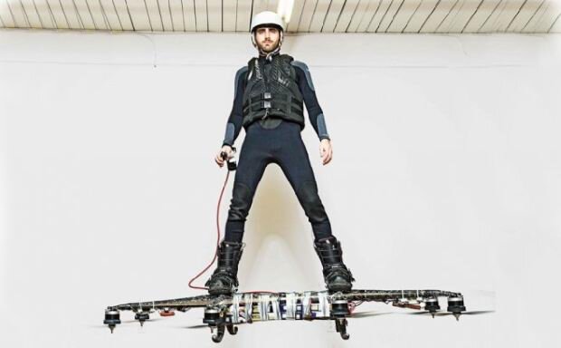 Инженер-программист Александр Дуру на летающей доске Инженер-программист Александр Дуру уже достаточно долго работает над проектом летающей доски собственной конструкции. Его проект носит название Omni. Разработка фантастического ховерборда из недавно популярного фильма увенчалась успехом и превратилась в реальность: показательный полет проходил на озере Уаро (Ouareau) в провинции Квебек, где Александр пролетел 275,9 м (905 футов 2 дюйма) на высоте около 5 метров. Книга рекордов Гиннеса зафиксировало этот рекорд, который оказался более чем в пять раз выше аналогичного полета ранее. Над созданием первого экземпляра летающей доски Александр трудился несколько лет и она состояла из куска обычной доски, к которой был привязан двигатель и гребной винт. Вокруг успешного начинания сплотилась группа единомышленников из которой образовалась команда, которая продолжила работу над проектом создания летающей доски, получившим название Omni Hoverboards. Следующий экземпляр, разрабатываемый командо