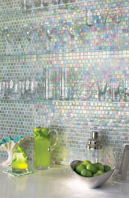 Существует огромный ассортимент специальных панелей для отделки кухонного фартука, но в сегодняшней статье мы бы хотели вам рассказать и показать несколько нестандартных и интересных способов, как защитить этот участок стены, задав дизайну кухни оригинальную ноту. Интерьер кухни всегда требует определенной креативности: с момента, когда вы заказываете понравившийся вам проект кухни в Москве и до момента, когда ваша счастливая семья в первый раз завтракает в обновленной кухне, потребуется приложить еще много усилий, чтобы дизайн интерьера стал действительно завершенным. И сегодня речь пойдет о самых необычных и неожиданных материалах, которые можно применить в отделке кухонного фартука… Компакт-диски Такой фартук смотрится ярко и необычно. При этом найти несколько десятков ненужных компакт-дисков, наверное, ни для кого не составит особого труда. Воплотить сию дизайнерскую затею в жизнь также совсем несложно: просто нарежьте диски на разные по размеру и форме кусочки, чтобы потом состави