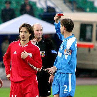 1. Уникальный курьезный случай. В Чемпионате России был уникальный в футболе момент, когда экс-капитан Зенита Радимов показал судье красную карточку. Это было во время игры с Рубином, а карточка была показана судье Колобаеву. Но судья не ушел... увы... Разгадка проста... судья потерял карточку, Радимов её нашёл и оригинально вернул владельцу