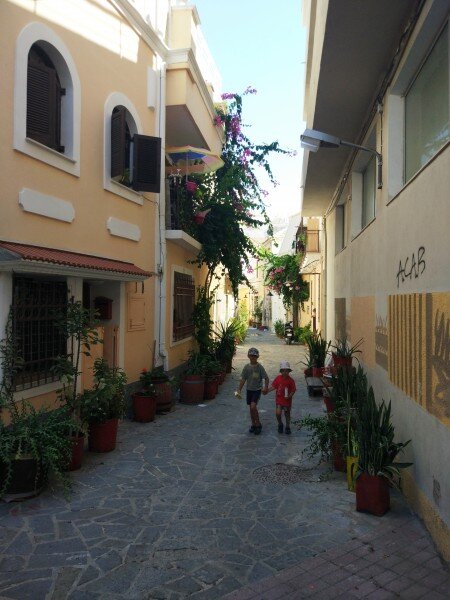 Я это к чему? А к тому, что греческие острова – это маленькие миры, где вместе замечательно отдыхают и взрослые, и дети. Там не надо ничем жертвовать :). Особенно такие острова рекомендуют семьям, где, как у меня, есть дошкольники. Комфортный климат. До всего можно более-менее быстро добраться (и разными способами - пешком, на автобусе, на городском паровозике, на автомобиле, на кораблике; всё это не долго). Спокойная обстановка на улицах. Люди с большими семьями, которые положительно относятся к любым детям и в случае чего сразу готовы помочь. Ну а если ехать на какой-нибудь греческий остров в конце мая – начале июня или осенью, там не обнаружится шумных школьников и студентов и к тому же будет не жарко :).