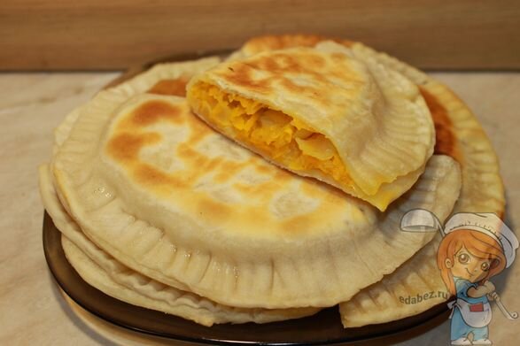 Чебуреки с тыквой: ароматная вкусная выпечка своими руками https://edabez.ru/vypechka/pirozhki/postnye-vegetarianskie-chebureki-s-tykvoj.html Ароматные чебуреки с поджаристой корочкой и сочной начинкой из национального блюда монгольских и тюркских народов давно превратились в любимые всеми пирожки. В наше время можно встретить рецепт полукруглых пирожков с ветчиной, сыром, сладкой начинкой. Традиционный рецепт чебуреков с мясом предполагает обжаривание на растительном масле или животном жире. Во время поста или тем, кто заботиться о своей фигуре и здоровье, предлагаем приготовить чебуреки с тыквой. Нам понадобятся следующие продукты: Для начинки: Общее время подготовки: 20-35 минут. Время обжаривания чебуреков: 5-10 минут. Общее время: 30-50 минут. Количество: 8-10 чебуреков Ароматный рецепт с удивительным вкусом Это блюдо наверняка придется по нраву гурманам из-за удивительного вкуса и аромата. Как приготовить чебуреки с тыквой: Совет. Воду надо добавлять постепенно, пока тес