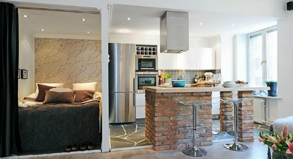 Приобретая квартиру, каждый пытается сделать ее наиболее удобной и функциональной, чтобы она отвечала всем потребностям и стилю жизни хозяев. Рассмотрим пять вариантов решения однокомнатной квартиры. И покажем, как можно адаптировать квартиру малой площади под разные задачи и сохранить весь необходимый функционал, не потеряв в качестве жилья. 1. Однушка-двушка Оптимальным решением для небольших квартир становится объединение кухни-гостиной в общую зону. Спальню при этом лучше организовать отдельным помещением. Такое решение можно применить практически в любой квартире небольшой площади, исключением становятся лишь квартиры, у которых внутреннее пространство разделено несущими стенами. Рассмотрим вариант превращения из однушки в двушку на следующем примере. Исходное планировочное решение предполагало одну комнату, которая должна была выполнять функцию гостиной и спальни, и кухню очень вытянутой формы — в виде «вагона». При нынешнем укладе жизни это не совсем удобно, поэтому план п