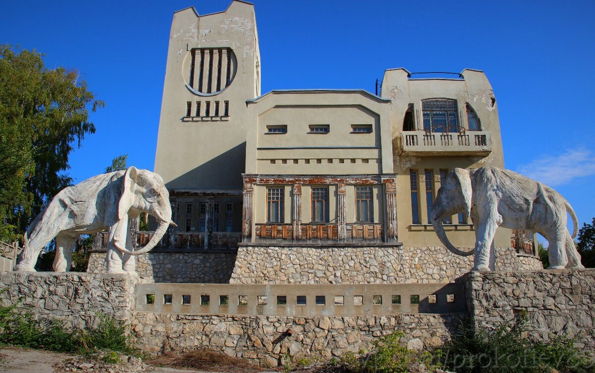 Один из уникальных самарских памятников архитектуры находится на берегу Волги в районе 5-ой просеки. В народе этот здание называют дача Головкина или дом со слонами. Построено здание в стиле русский модерн в начале прошлого века, в 1908-1909 году. Проект разрабатывал архитектор В. Тепфер, но и непосредственное участие в создании проекта принимал сам владелец дачи - самарский художник и купец К. П. Головкин. Жил он на даче только летом, зимой вместе с семьей переезжал в город. В 1917 году грянула революция и владелец дачи с семьей был вынужден уехать из страны. Дачу национализировали. Сначала в ней открыли госпиталь, а затем детский сад. В 1929 году здание было передано Водоканалу. Новые владельцы провели центральное отопление, тем самым положив начало разрушению дома. Построенное из пустотелых блоков здание не выдержало, начал проседать фундамент. Было принято решение усилить фундамент металлическими стяжками. Но стало только хуже - появились трещины в стенах, здание начало рассыпат