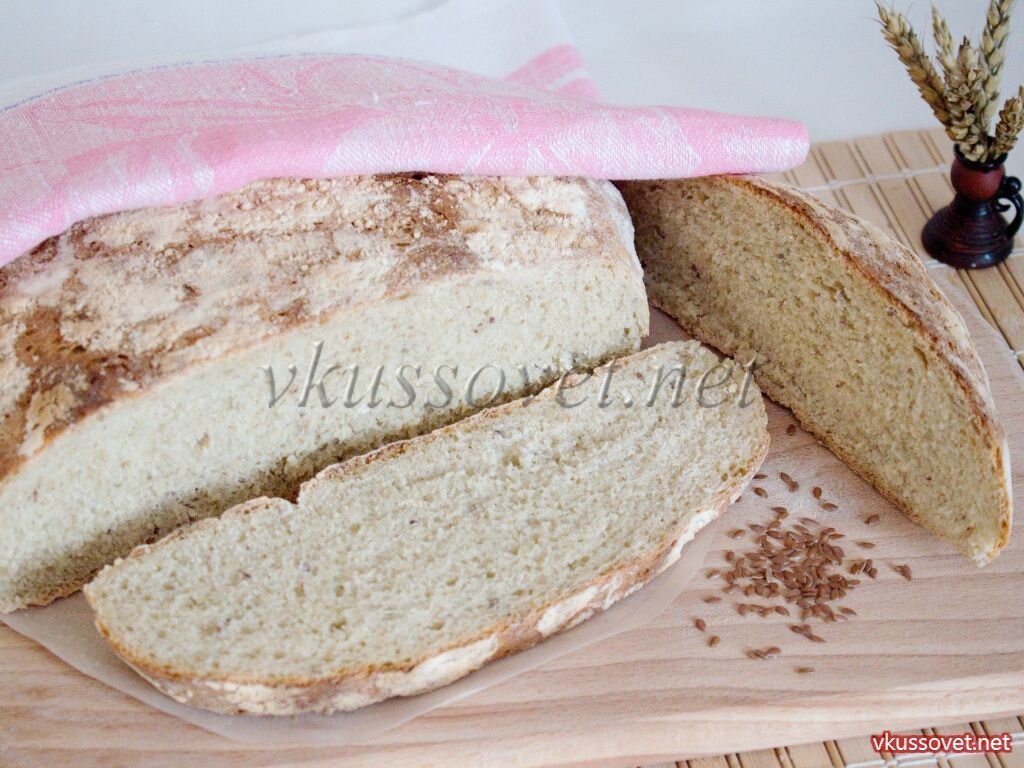 Рецепт приготовления хлеба с хрустящей и поджаристой корочкой. Сейчас редко встречается хлеб от которого раньше, пока доносили до дома, «пачкались» в муке. Но мы любили его за твердую и поджаристую корочку от которой, если постучишь, был слышен глухой отзвук. По этому рецепту хлебушек получается практически таким же. Готовится он несложно и имеет совсем простой состав. Именно поэтому я решила его немного разнообразить и добавить семя льна. Все знают пользу этих семян – они полностью состоят из многих видов макро и микро элементов, а также имеют в составе различные виды ценных жирных кислот. Но при желании вы можете добавить в свой хлеб что – нибудь другое или совсем ничего не добавлять, он и так получается очень вкусным, ароматным и практически не крошится.