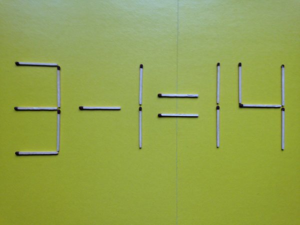 Попробуйте решить и другие мозголомки: - Головоломки с перемещением одной спички есть тут. И тут. - Потренироваться с задачей в перекладывании двух спичек можно здесь. Или по этой ссылке. - Для тех, кто не ищет простых путей существуют задачи с перемещением трех спи