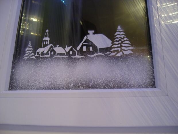 1. Искусственный снег - легко наносится, легко смывается водой, не оставляя следов и разводов на стекле.