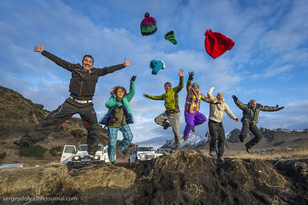 На следующий день мы встали с утра пораньше и поехали в деревню Вик - самую южную точку Исландии. Здесь проживает всего 500 человек, но, тем не менее, это самое большое поселение в радиусе 70 километров. По дороге в деревню мы увидели заброшенный американский самолет… Притормозили у странного знака с изображением снегохода и ключей: Сделали остановку, чтобы передохнуть и встретить рассвет. Пока все гуляли, я немного поснимал: Нам показали местную достопримечательность - Дуглас DC-3 "Дакота". Этот самолет разбился в 1973 году из-за плохой погоды у подножия знаменитого вулкана Эйяфьядлайёкюдль, извержение которого в 2010 году парализовало европейскую линию авиа сообщения. Говорят, долгое время самолет был абсолютно целым, пока исландские фермеры не разобрали его для своих хозяйственных нужд: Еще видна надпись UNITED STATES NAVY: Внутри пустота и разруха, днище завалено черным вулканическим песком: Потом вышло солнце, и унылый пейзаж преобразился: Мы немного поприкалывались и изобразили