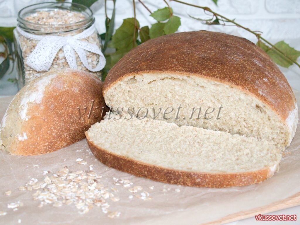 Рецепт приготовления домашнего хлеба с добавлением молотых овсяных хлопьев. Для приготовления этого хлеба, овсяные хлопья нужно брать не быстрого приготовления, а простые. Чтобы у этого хлебушка получилась хрустящая румяная корочка, в процессе выпекания, добавляется водяной пар, именно он отвечает за образование этой восхитительной корочки, причем мякиш остается мягким и нежным. По своей структуре буханка хлеба получается легкой, воздушной и немного рассыпчатой. Так как в состав теста входит совсем немного сахара, то его можно подать в качестве закуски и к первым блюдам и вторым. Овсяный хлеб идеально сочетается со сливочном маслом и любимым джемом или вареньем. Если вам не нравится форма овсяного хлеба в виде батона, то можете сформировать его иначе – в виде круглой буханки, багетов, небольших порционных булочек, калачей и. д. или воспользоваться традиционной формочкой для выпекания хлеба. Состав: - 400 г. пшеничной муки; - 60 – 70 г. овсяных хлопьев; - 300 мл. теплой воды; - 2 ст. л