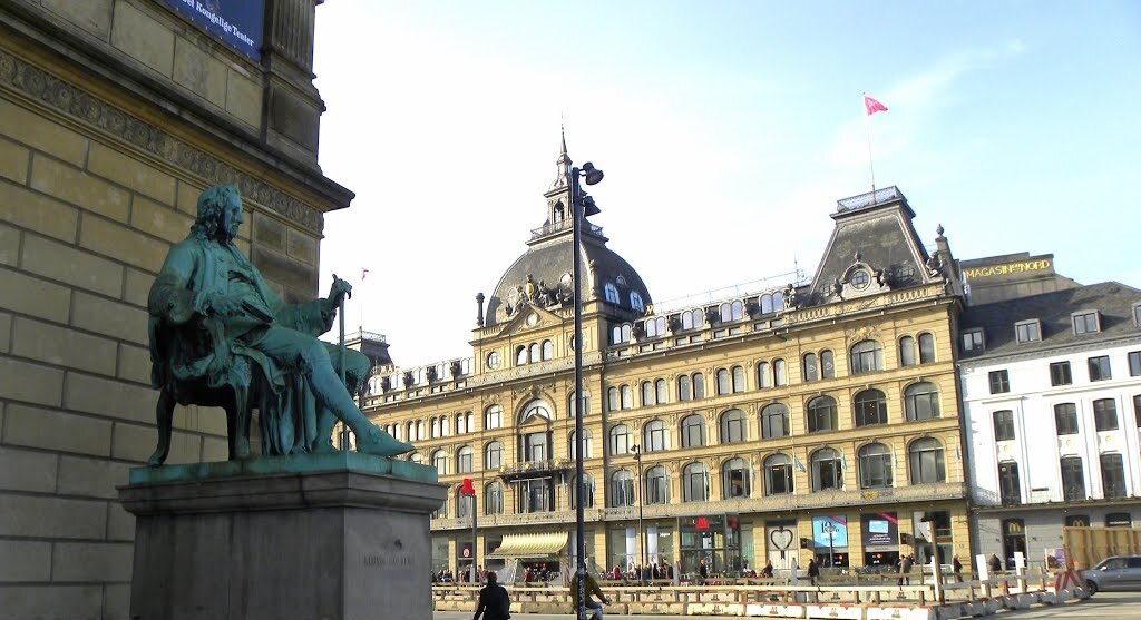 ... Памятник Хольбергу установлен в Копенгагене, у здания Королевского театра. Впрочем, норвежские выпускники гимназий по традиции каждую весну отправляются в столицу соседней Дании восстановить историческую, как им кажется, несправедливость. И регулярно, из года в год слово 'датский' кем-то закрашивается, и вместо него появляется другое - 'норвежский'. Вскоре, однако, порядок восстанавливается.