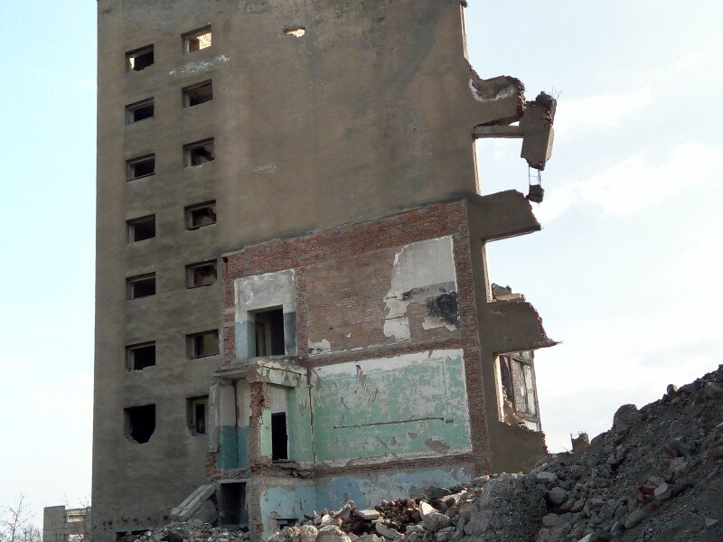 Находясь в Чечне, общаясь с местными, невозможно миновать тему войны. Даже, если очень хочешь избежать разговоров о ней – война все равно тебя найдет. Таксисты жалуются, что уже третий раз после войны меняют названия улиц. Бабуля в магазине рассказывает, что до войны знала всех соседей в лицо. Бородатые охранники в кортеже Кадырова… Впрочем, последнее – совсем другая история. О том, как этот самый кортеж был вынужден разорвать свой строй и как меня «уговорили» стереть снятое видео, я расскажу в самом конце поста. Ну а пока - раны на теле Грозного... На самом деле в городе осталось очень мало объектов времен двух чеченских войн. Большинство зданий отреставрировано, некоторые пришлось полностью снести и построить заново. Именно этим объясняется, что Грозный производит впечатление молодого города, хотя у него весьма богатая история. Тем не менее, кое-что после войны сохранилось. В основном в Заводском районе. Если забраться на Сунженский хребет (сначала по асфальту, потом по гр