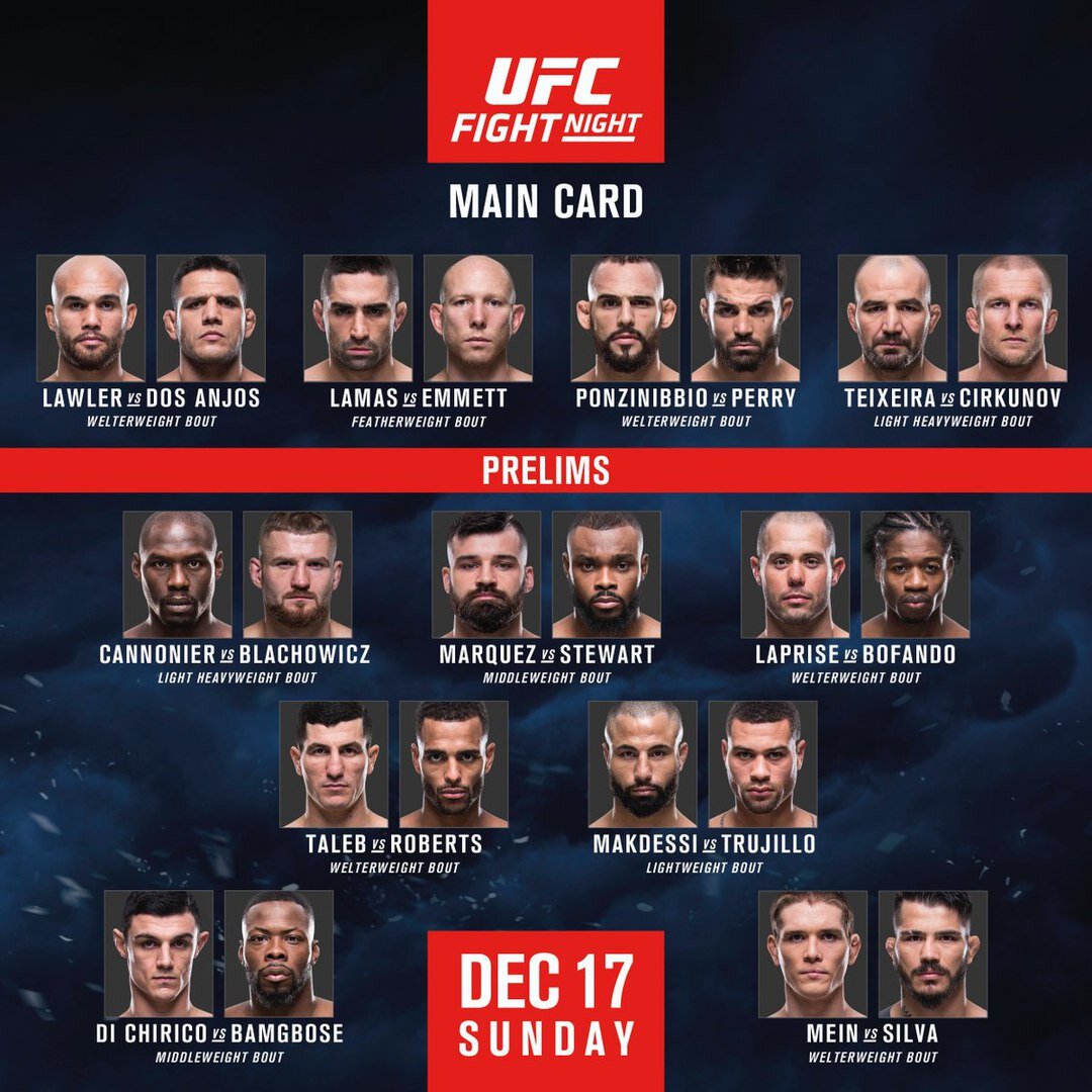 Разбор главного боя. Начальный кард начнётся уже совсем скоро 17 декабря в 00:30(мск)/ Главный кард в 04:00(мск). Оба бойца являются экс-чемпионами в различных весовых категориях. Бывший чемпион легкого веса Дос Аньос, потерял свой титул в бою с Эдди Альварезом. В начале поединка он уверенно контролировал бой, но попавшись на обманный удар Эдди, Рафаэль изрядно «поплыл», после чего последовало долгое и жестокое добивание, заставившее рефери остановить поединок.