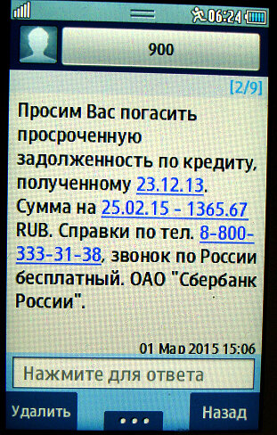 Недавно знакомому прислали SMS, в которой написано, что у него накопилась просроченная задолженность по кредиту от "Сбербанка". И для разрешения ситуации необходимо позвонить по телефону 8-800-333-31-38. Многие годы в интернете идут споры: чей это номер телефона: Сбербанка или мошенников. Да, это действительно Сбербанк — центр Управления сбора просроченной задолженности.