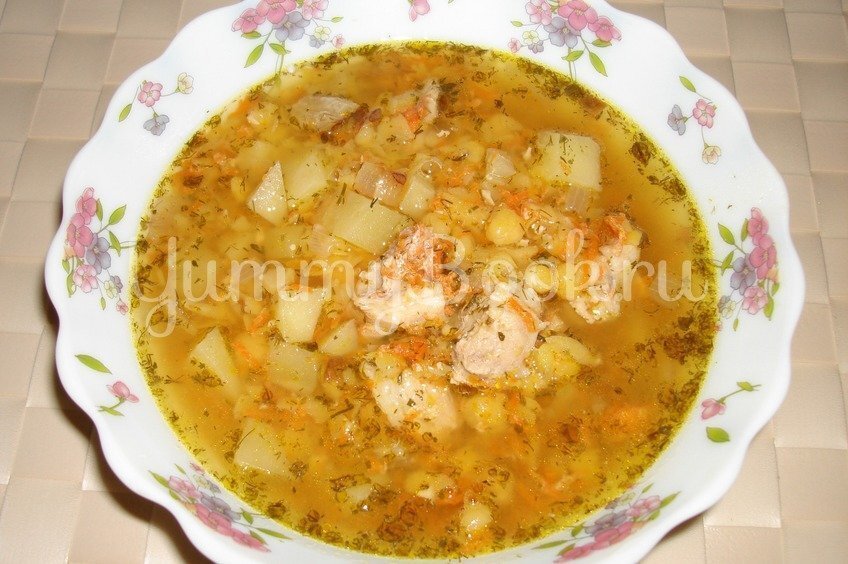 3 часа 4 порции Нам понадобится: 250г свинины 1 луковица 3 небольших картофелины 20г сливочного масла 1,5 мультистакана гороха 1 морковь соль специи Пошаговое описание рецепта 1. Мелко порезанный лук, тертую морковь, мясо и сливочное масло загрузить в кастрюлю и включить режим "Выпечка" на 20 минут. 2. Затем засыпать промытый горох и залить горячей водой так. чтоб она покрывала горох. Включить режим "Тушение" на 2 часа. 3. Порезать картошку. 4. Высыпать картофель в суп. Посолить, добавить специи и опять включить режим "Тушение" на 1 час. 5. Гороховый суп в мультиварке готов.