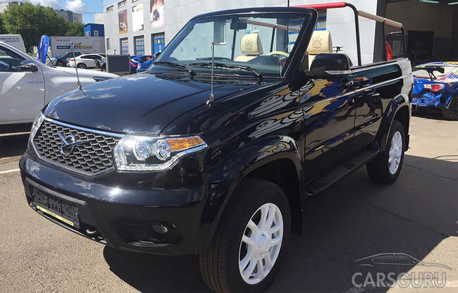 Автопроизводитель УАЗ разработал кабриолет на основе флагманского внедорожника Патриот. Первая модель была создана для правительства Намибии по спецпроекту, ее основным назначением был выезд на торжественные события. Судя по снимкам, за передним рядом сидений установлен помост, а дуги безопасности получили мягкую отделку для повышения комфорта. На данный момент, производитель планирует выпуск спецверсии кабриолета Патриот по предварительным заказам правительства разных стран. Новинка располагает салонными поручнями для удобства пассажиров, оригинальным дизайном интерьера и необычным окрасом. Как рассказал директор по экспорту Андрей Дорофеев, ранее УАЗ получил заказ на несколько моделей Патриот в кузове кабриолет от силовых структур соседнего государства. Как предполагают специалисты, заказов на уникальную модель ежегодно будет не больше двадцати, но мощностей завода достаточно и для коммерческого рынка. Предполагается, что такие внедорожные модели пользовались бы спросом в странах