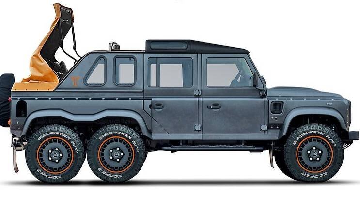 Mercedes, для большей эксклюзивности, решил произвести только 99 автомобилей Maybach G650 Landaulet, оставляя потенциальных клиентов-«неудачников», которые не попадут в список счастливщиков, перед дилеммой, что купить в отмеску вредным немцам. А решений проблемы покупки всего два — поиск на рынке подержанных автомобилей Mercedes-AMG G63 6×6 или попробовать разместить заказ на совершенно новый Hennessey VelociRaptor 6×6. Возможно, теперь они посмотрят еще на один вариант — Kahn Design Flying Huntsman 6×6 Soft Top — автомобиль с довольно помпезным именем, для сильно измененного Land Rover Defender, с шестью ведущими колесами и съемной мягкой крышей. Автомобиль еще не существует, но Kahn Design уже дразнит достопочтенную публику его рендерами. Никаких официальных сведений о шестиколесном внедорожнике нет, кроме того, что он скоро появится. Тем не менее, рисунки позволяют нам увидеть, что передние пассажиры получат жесткую крышу над их головами, в то время как те, кто сидит позади, смогут