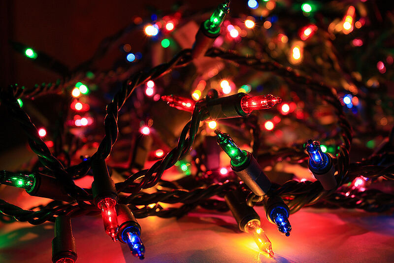 В английском есть несколько слов соответствующих русскому гирлянда. Самое похожее по форме - garland ('галэнд). Оно как и русское гирлянда происходит от французского слова guirlande, которое в свою очередь происходит от итальянского ghirlanda означающее косу, ленточку. Однако в английском garland употребляется в более широком смысле (и близком к оригиналу) - это украшение из соединенных между собой цветов, фруктов, лампочек, мишуры (tinsel по-английски) и тому подобных предметов (поищите картинки к гирлянде и к garland, чтобы наглядно увидеть разницу). А в русском это в большинстве случаев именно украшение из лампочек. Этому значению соответствуют fairy lights и даже christmas lights.