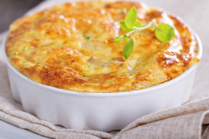 В ТЕМУ: Сырные палочки в духовкеПри мощи блендера смешай яичные желтки (белки пока отложи в отдельную миску), кабачок, молоко и муку. Должна получиться однородная консистенция. После влей растопленное масло. Посоли, поперчи. Отдельно взбей белки в пышную пену. Добавь их в тесто и перемешай. Полученную массу переложу в форму для запекания, смазанную сливочным маслом.Поставь в разогретою до 180 С духовку на 25-30 минут.Приготовь соус. Шампиньоны нарежь и измельчи в пюре. Добавь измельченную луковицу и сметану. Перемешай.Грибным соусом можешь смазать готовое блюдо или же подавай его отдельно.