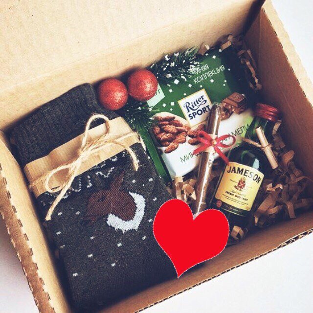 В преддверие Нового года все мы задаемся вопросом о подарке друзьям, любимому, подруге..Побродив по магазинам, сайтам, пришла к выводу, что цена предложенного ассортимента не оправдывает мои ожидания. Как-то вечером листала инстаграм и наткнулась на фотографию, где коробочки со всякой "всячиной" . Знаете, меня не столько удивило содержимое подарка, как его простота и оригинальность. Решено!!!Отправляюсь в Ленту(или другой ближайший гипермаркет) за приятными мелочами. Сейчас очень много скидок на шоколадки, алкоголь и новогодние сувениры... Откопав дома коробочку из под обуви( лайфхак : коробку можно попросить в любом магазине) решила экспериментировать. Что можно положить в коробку? Вариантов множество, все зависит от предпочтений вашего избранника и от вашего воображения. Вариант 1. Напеките имбирного печенья. Имбирные человечки уже стали символом Нового года и Рождества на Западе. Из них действительно получится приятный подарок для ваших коллег и друзей. Приготовленных человечк
