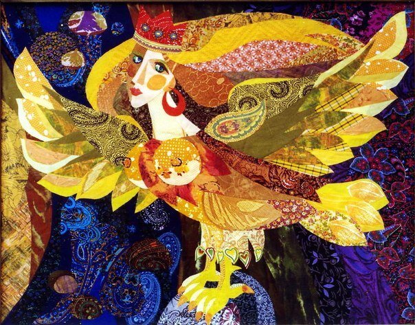 Тётя Тома расстилает на сцене рябенькое покрывало. Пёстрые лоскутки, сшитые накрепко в причудливый узор, покорно расправляются, жар- птица косит живым глазком. Шлёп - на подвыцветший султан перьев - банку сметаны, на крылья - круглый каравай с матовой коричневой корочкой, глазок гаснет по шматом сала.