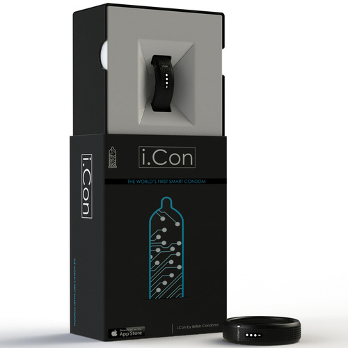 Гаджет i.Con на самом деле не совсем презерватив. Это кольцо, которое надевается поверх презерватива на его основание. Внутри устройства несколько датчиков и чипов для определения физической активности во время полового акта. Устройство умеет считать: длительность, скорость и интенсивность движения, наиболее популярные позы и количество актов за промежуток времени, температуру половых органов, а также количество затраченных калорий. В качестве дополнительной функции заявили, что «умный» презерватив предупредит о наличии у партнера заболеваний, передающихся половым путем. Но пока разработчики не получили лицензию, так что его нельзя назвать медицинским аппаратом. Внешне i.Con выглядит как обычный фитнес-браслет. Он выполнен из специальной резины, которая умеет сильно растягиваться. На корпусе нет кнопок, только