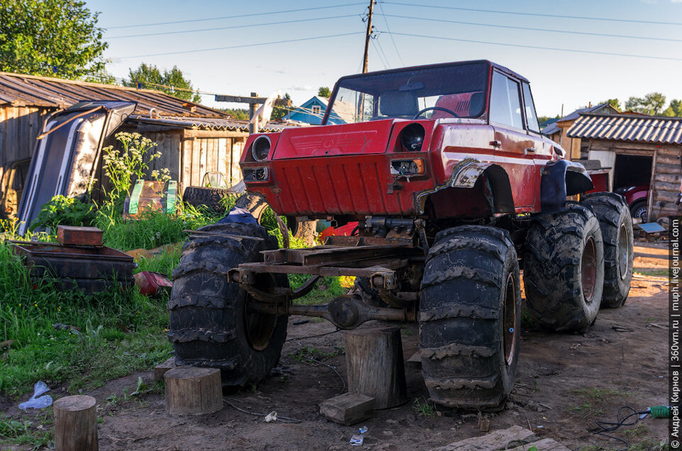 Для чего здесь такой автомобиль спросите вы? А вы посмотрите на карту и найдите там Порог. Такого количества болот в одном месте еще поискать. А вот выезжал ли на этом вездеходе куда либо порожский Кулибин в этом сезоне или нет, увы, не знаю. А было бы интересно проследить его судьбу. Всё таки, согласитесь, задумка неординарная.