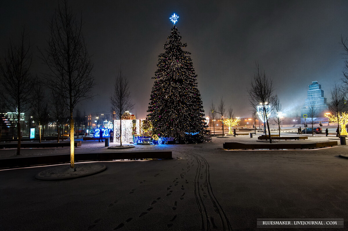 Вчера был замечательный вечер, выпал снег, причем такой как надо, какой мы хотели бы видеть в новый год. Так что можно сказать, что у погоды вчера была репетиция Нового года. В сам праздник я бы не стал соваться в центр и отмечать его там. Как-то у меня был такой опыт и мне не понравилось. Кроме огромного числа народа, что ожидаемо, еще есть проблема с нашими не очень адекватными полицейскими, которые все перегораживают и для перемещения куда-либо надо стоять в очереди и проходить через рамки. Так вот, если вы хотите этого всего избежать, но прогуляться по настоящему новогоднему городу, делайте это сейчас. Город к празднику уже нарядили, тут ничего нового не предвидится. Погоду тоже можно поймать снежную, ну и темнеет чуть ли не после обеда. Все условия для получения новогодних фоточек Москвы соблюдены. Я решил поглядеть, как дела в самом модном месте Москвы в этом сезоне - в парке Зарядье. Во-первых, все другие московские достопримечательности из года в год наряжают одинаково, ну или меняя дислокацию декораций, так что там я все уже видел, а во-вторых, интересно было посмотреть на Зарядье зимой. Имеет ли вообще смысл сюда приходить, или это парк исключительно для летних прогулок.