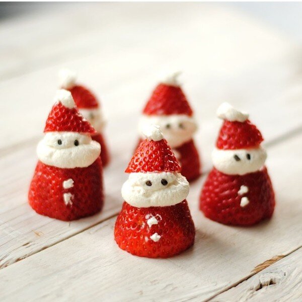 Гости придут в восторг, увидев ваш новогодний стол! И никто не узнает, что сделать эти симпатичные закуски можно в два счета... Кто-то любит сложные рецепты и вкусные салаты, а кому-то интереснее легкие закуски. Вот их мы и предлагаем вам сделать в качестве украшения новогоднего стола. Валенки из сосисок Что делаем: Готовые сосиски нарезаем на кусочки, как на картинке. Аккуратно протыкаем зубочисткой, украшаем сливочным сыром и кокетливым листочком петрушки. Дед Мороз из клубники и сливок Что делаем: У клубники отрезаем верхушку, из взбитых сливок формируем голову Деда Мороза и накрываем красной шапочкой. Армия новогодних дедушек готова! Новогодние шишки Что делаем: Следуем картинкам ниже шаг за шагом. Они увеличиваются по клику, чтобы перейти к следующей, надо нажать на стрелочку. Елочка из пиццы Что делаем: Не обязательно готовить полноценную пиццу. Чтобы смастерить такие елочки, смешиваем сливочный сыр и авокадо (можно в блендере), берем лепешку по вкус
