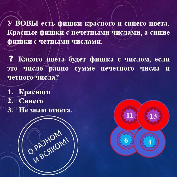 У ВОВЫ есть фишки красного и синего цвета. Красные фишки с нечетными числами, а синие фишки с четными числами.