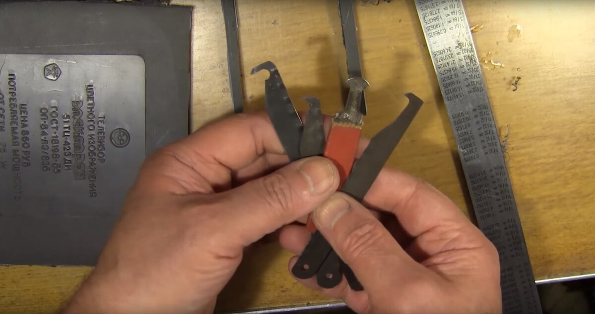 Резак для резки пластика своими руками. Осталось сделать им ручки. Можно использовать старые зубные щётки. Конструкция которых упоминалась в различных изданиях для самодельщиков и была в общем-то неизменной. Затачивались полотна так-же, и велись под острым углом вдоль линейки на себя. В таком случае всегда возникали проблемы:
