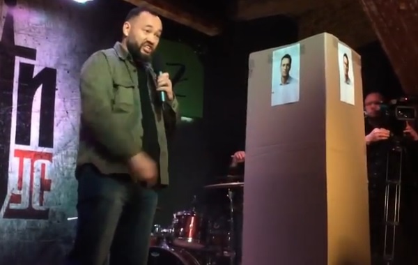 Петербургский депутат провел рэп-батл с картонной коробкой с лицом Навального