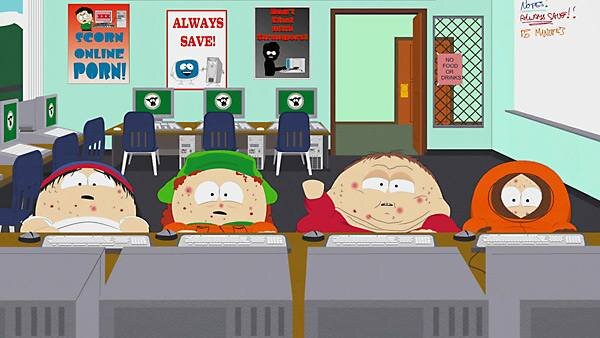 «Южный парк» (South Park) — это очень смешной, неполиткорректный, умный и местами пошлый американский мультсериал. Создается Comedy Central с 1997 года (и сейчас идет уже 21 сезон). Анимационный сериал рассказывает про жизнь четырёх школьников младших классов, их друзей, а также взрослых (жителей городка Саут-Парк и современных знаменитостей). В сериале затрагиваются самые разнообразные проблемы и темы. Тема, связанная с компьютером тоже присутствует. Рассмотрим самые интересные с 1 по 15 сезоны.