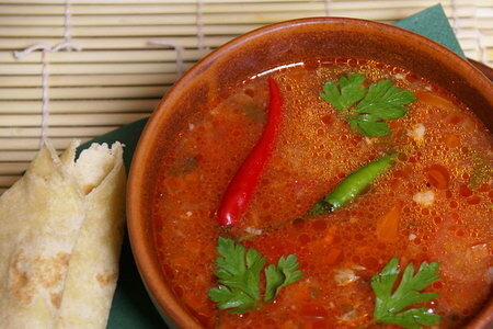 Грузинская кухня, без сомнения, особенная. Кто не слышал о сациви, хинкали, хачапури, чахохбили – эти блюда вызывают аппетит одним певучим произношением . Такую же реакцию может вызвать у человека название еще одного знаменитого грузинского блюда — супа харчо. Да не того, которым изобиловал советский общепит. И не копеечные пакетики полуфабрикатов с названием «Суп Харчо», у которых принадлежность к грузинской кухне определялась красным цветом и обилием жгучего перца. Речь идет о настоящем «дзерохис хорци харшот» — говяжьем супе с рисом и грецкими орехами.