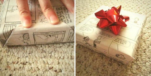 1. Комиксы вместо газеты Потому что это эко-дружественный и совершенно бесплатный вариант оригинальной упаковки (если у вас есть старые комиксы, конечно!). Впрочем, годится красивый журнал, ненужная книга (а такие бывают?), и что-то ещё бумажное, что вам попадётся под руку. 2. Бумага, фото и веточка Или просто используйте коричневую упаковочную бумагу: это самый экологичный способ дарить подарок. Прикрепите свою любимую фотографию вместо карточки с екстом, украсьте обёртку красивой веточкой, тесьмой, лентой хлопчатобумажной ткани или льняной бечёвкой, и ваш подарок не захочется распаковывать, потому что это уже самостоятельное произведение искусства! 3. Бантик? Рисунок! Или просто нарисуйте бант на упаковке, потому ч